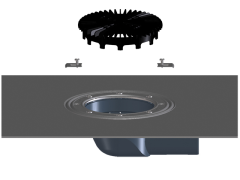 HL3100THG Сифон с вертикално оттичане, битумен маншет, рамка и решетка от чугунСифон с вертикално оттичане, битумен маншет, рамка и решетка от чугун