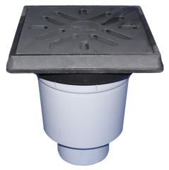 PERFEKT-подов сифон DN160, долно оттичане, с пластмасова рамка 244 х 244 мм, решетка от пластмаса 226 х 226 мм с винтове, пясъкоуловител и воден затвор