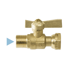 Сферичен кран 1/2" x 3/4" M с въртяща гайка и източващ вентил, месингова пеперудна ръкохватка