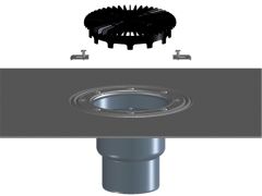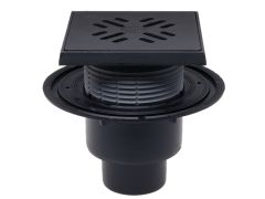 Тяло за подов сифон за тераси DN50/75/110, долно оттичане, заводски заварен битумен маншет, като идеално се заварява с битумни хидроизолационни мембрани.