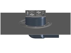 HL80HK Тяло на подов сифон за тераси и балкони DN50/75, отточна тръба на шарнирна връзка, фланец с SТяло за подов сифон за тераси и балкони DN50/75, със заводски заварена SBS битумна мембрана d 420мм за идеалното свързване с битумни хидроизолации, оттичане странично или долно с безстепенна настройка на отточната тръба от 0-90°.