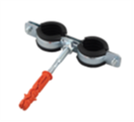 Метална скоба за тръби, двойна 3/4" с уплътнение, шпилка и дюбел, M8/DG8x65