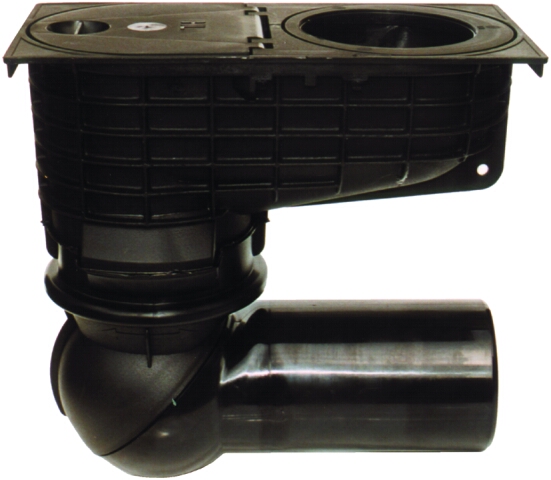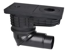 Ревизия за водосточни тръби DN110/125 и 360 ° въртяща се връзка (отточната тръба се настройва безстепенно от 0° до 90°), клапа против канални миризми незамръзваща с уплътнение, листоуловител с функция за преливане, ревизионен капак с дръжка, хоризонтално регулируеми пръстени за водосточни тръби d 80, 100 и 120мм.