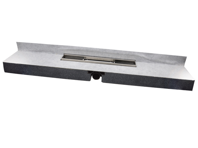 ДУШ-КАНАЛ вграден в EPS-монтажен елемент със сифон и неръждаема рамка, но без видим капак. Хидроизолирана, каширана горна повърхност с интегриран наклон